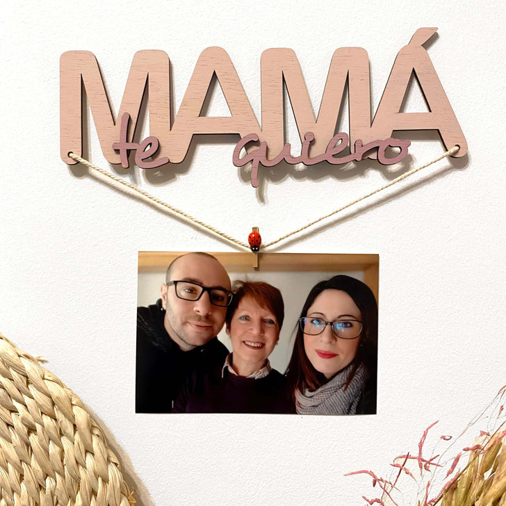 Este precioso set de regalo es ideal para homenajear a una mamá especial. Incluye tres artículos encantadores: una vela con tapa de madera, un marco de fotos con forma de flor y un colgador de metacrilato dorado. La vela tiene una tapa de madera grabada con la frase "MEJOR mamá del 🌍", destacando el cariño y aprecio. El marco de fotos en forma de flor tiene la inscripción "MI REFUGIO ERES TÚ MAMÁ", ideal para colocar una foto entrañable. El colgador de metacrilato dorado lleva grabado "I ❤️ mamá" con varios corazones alrededor, perfecto para añadir un toque decorativo a cualquier espacio. Este set es perfecto para regalar en el Día de la Madre, cumpleaños o cualquier ocasión especial.