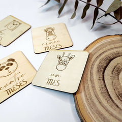 Esta diseñado con motivos de animales y realizado con grabado y corte láser. Captura cada mes de crecimiento de tu pequeño de manera única y encantadora.