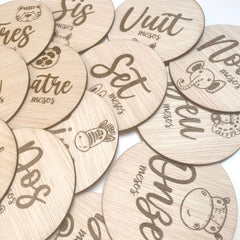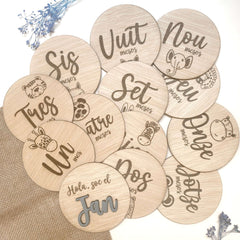 Captura momentos inolvidables y mira cómo crece mes a mes. ¡Haz que cada mes sea especial con nuestros cumpleañosmeses de madera, el regalo perfecto para inmortalizar su primer año!