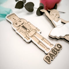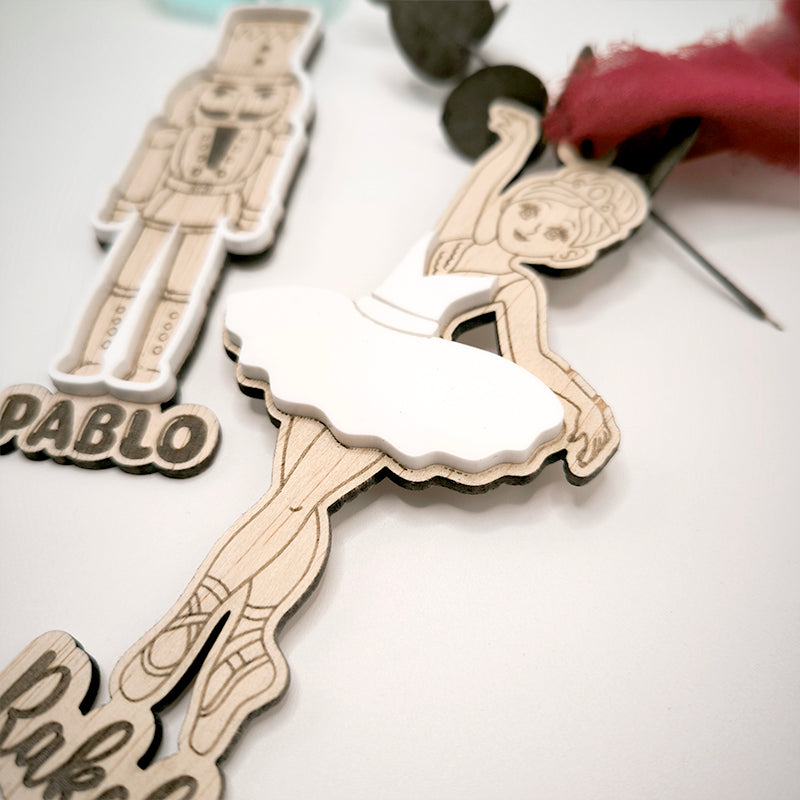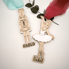 Dale un toque único y especial a tu árbol de Navidad con estos elegantes colgadores personalizados. Disponibles en dos diseños exclusivos, el clásico Cascanueces y la delicada Bailarina.