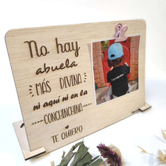 Además, incluye accesorios para que se sostenga de pie, permitiendo exhibirla con orgullo en cualquier lugar. Un regalo especial que captura momentos inolvidables con estilo y elegancia. ¡Revive tus recuerdos con nuestra placa de madera hecha a mano!