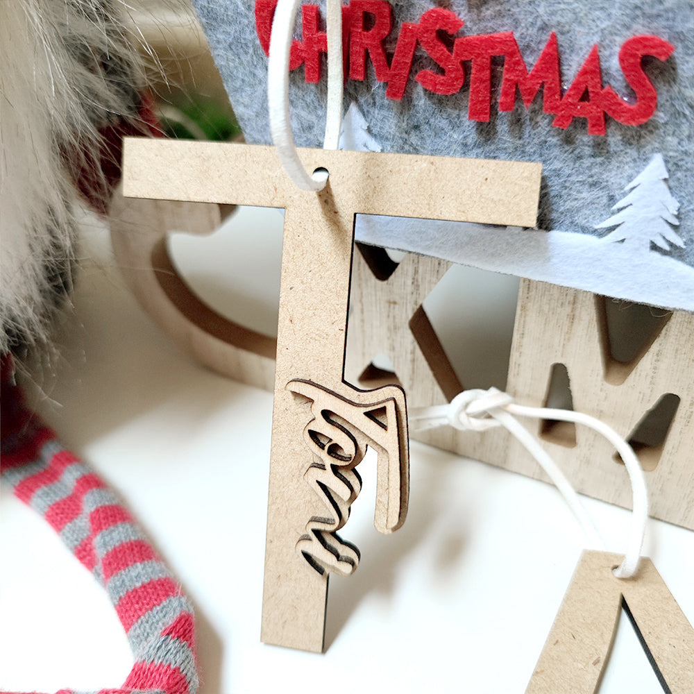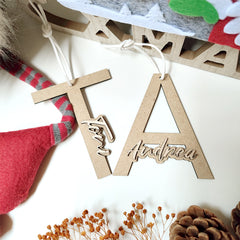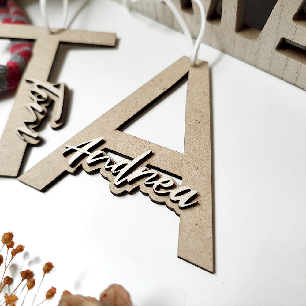 ¡Haz que tu árbol de Navidad sea más personalizado con nuestra inicial de madera con nombre recortado y pegado encima de la inicial! 😊