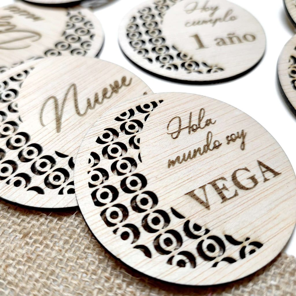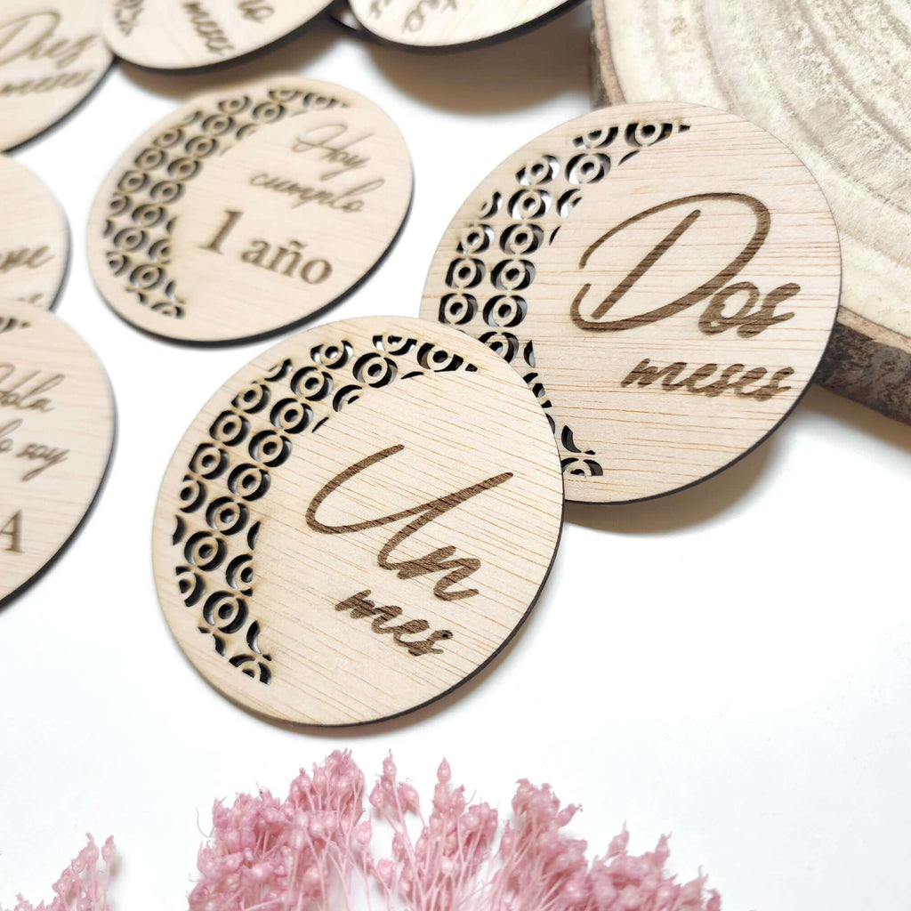 Cada mes, inmortaliza un momento especial con estos adorables círculos decorativos. Con un diseño único que combina los 12 meses y un patrón de ratán, agregará un toque encantador a las fotos de tu pequeño.