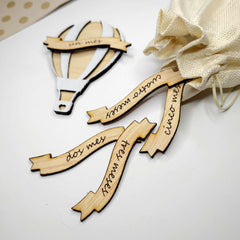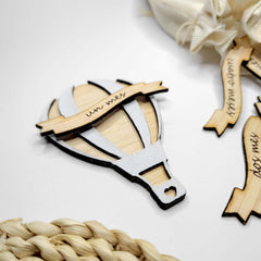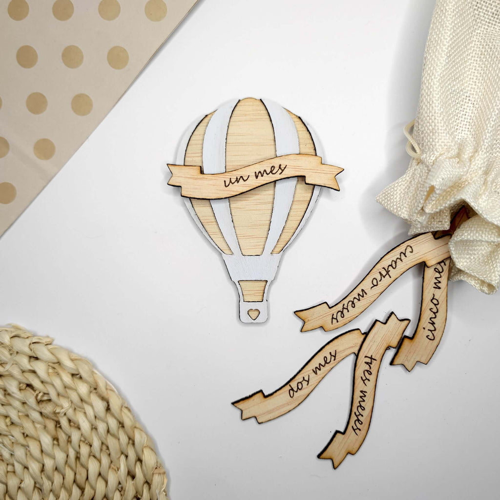 Celebra cada mes de tu pequeño con nuestro encantador cumple mes infantil en forma de globo. Hecho a mano con maderas de calidad, este adorno artesanal cuenta con letreros intercambiables gracias al velcro.